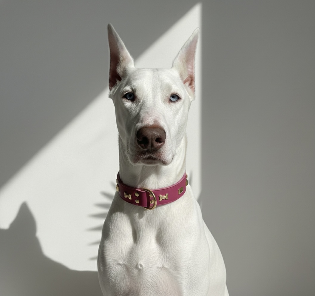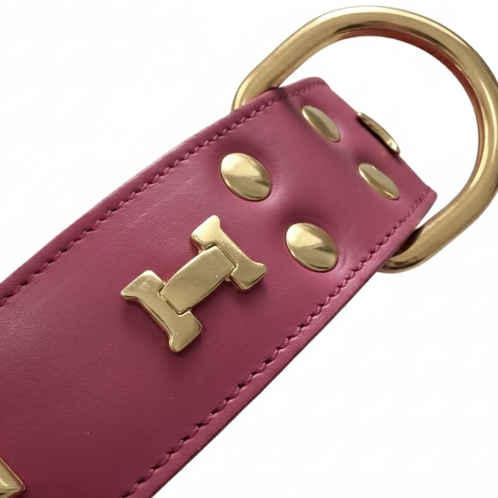 The Fuchsia Haute Collar is a premium leather dog collar designed for discerning dog owners who value elegance, craftsmanship, and timeless style. Made from the finest natural leather and finished with meticulously crafted hardware, this collar exudes sophistication and durability.