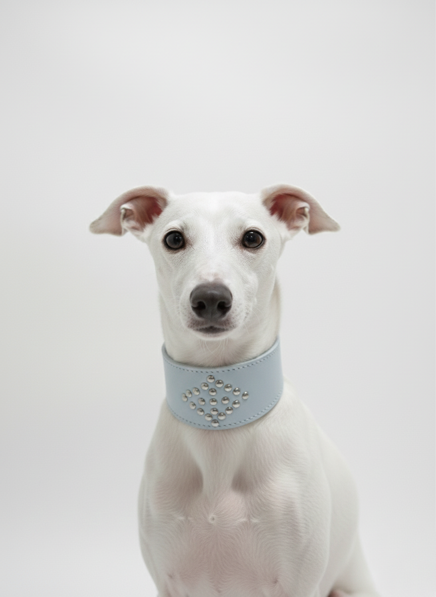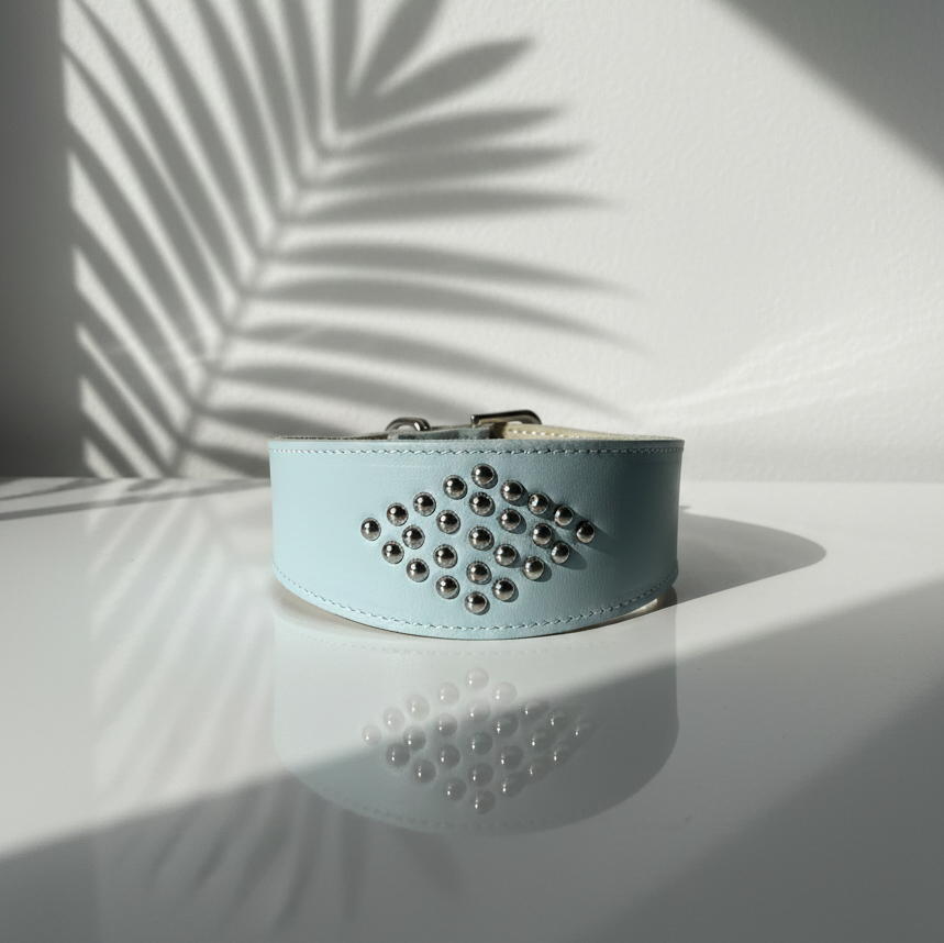 Handcrafted Luxury Light Blue Leather Studded Collar