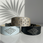 A perfect choice for those looking for a luxury handmade leather collar, designer pet accessory, or elegant wide collar with a modern touch.