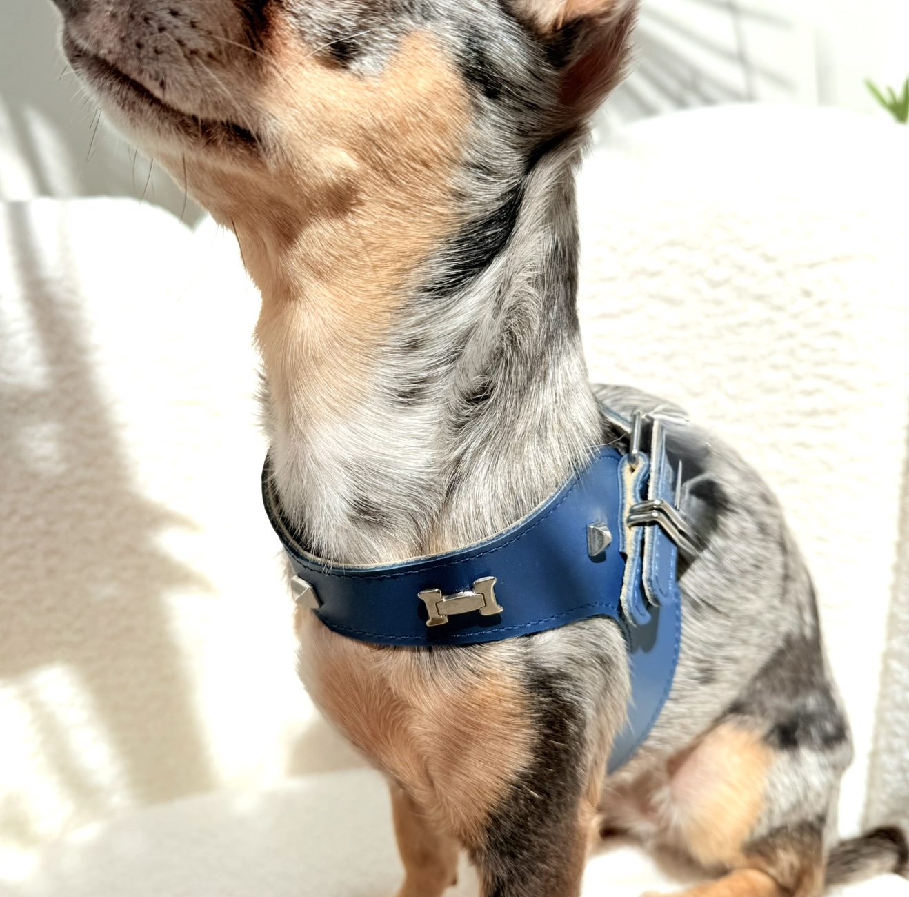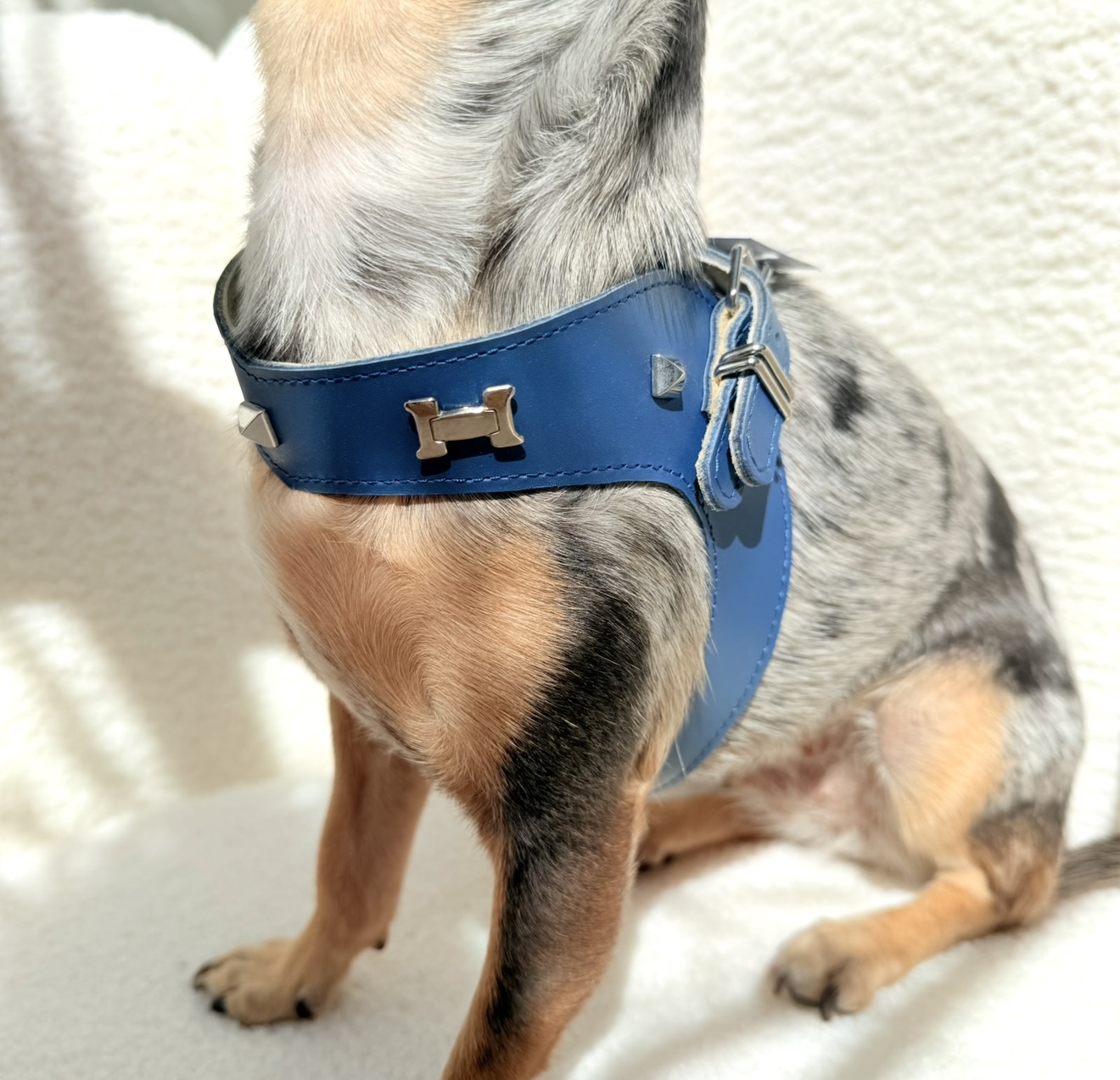 Over time, the leather becomes even softer and more supple, adapting perfectly to your dog’s shape — a true hallmark of handcrafted designer dog accessories created for elegant and fashion-forward companions.